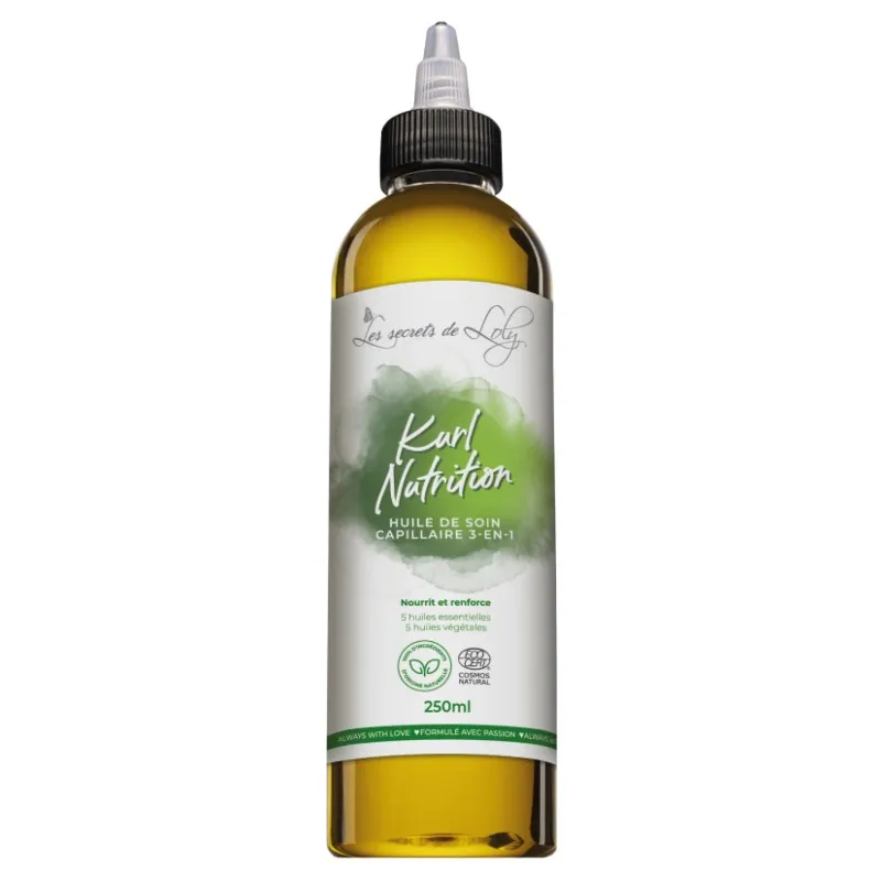 Le Kurl Nutrition des Secrets de Loly est une huile de soin capillaire 3 en 1 100 % d’origine naturelle, spécialement conçue pour nourrir, renforcer et sublimer les cheveux texturés (ondulés, bouclés, frisés et crépus), sans les alourdir.