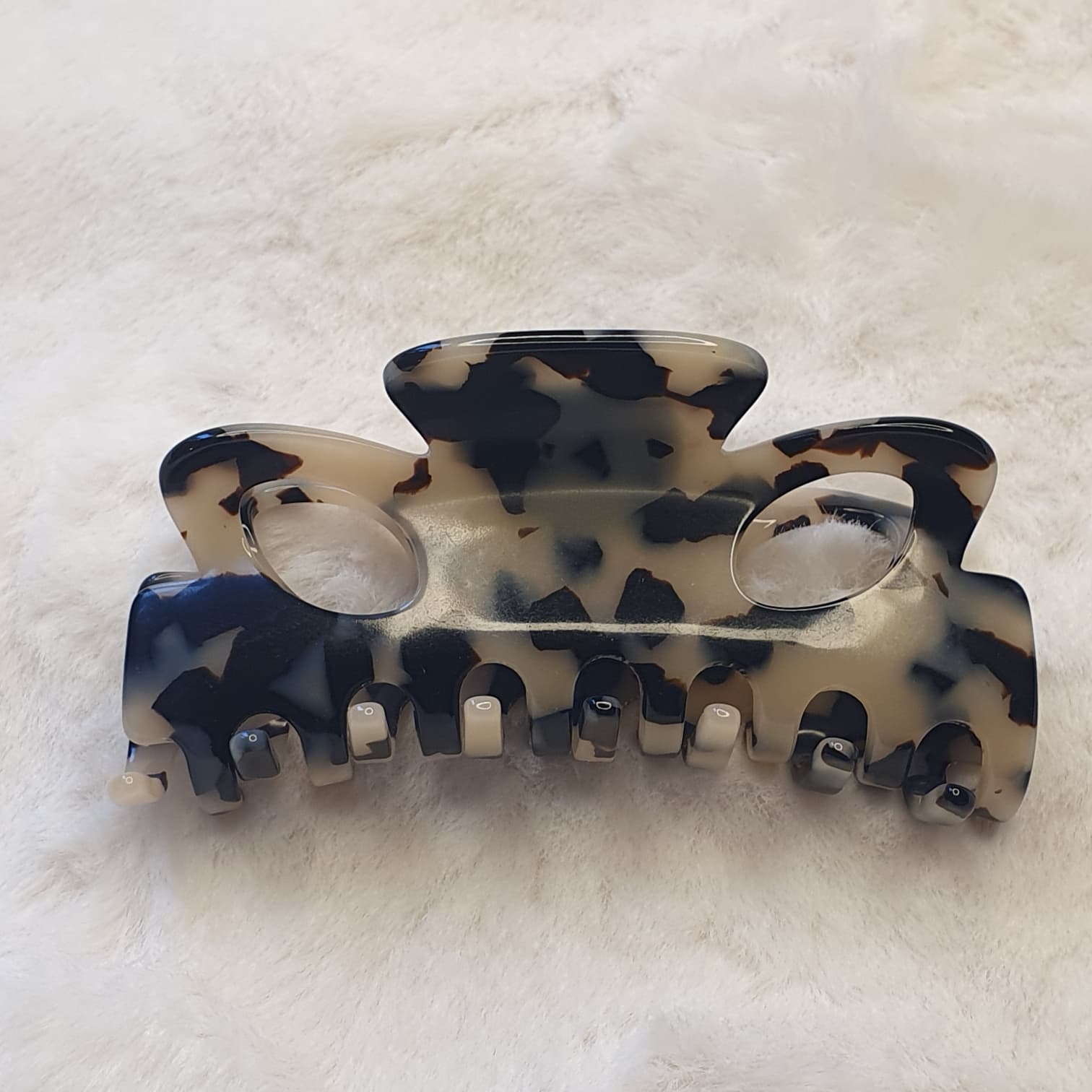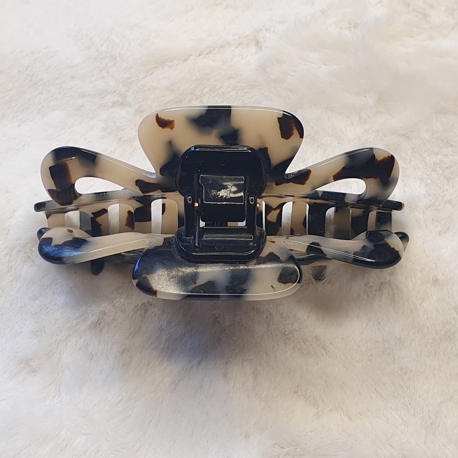 *Forme et Fonctionnalité : De forme papillon (ou crabe) allongée, elle est munie du mécanisme à double rangée de dents, assurant une fixation exceptionnelle sur une grande surface. La longueur de 9 cm permet de rassembler facilement tout le volume d’une chevelure longue.