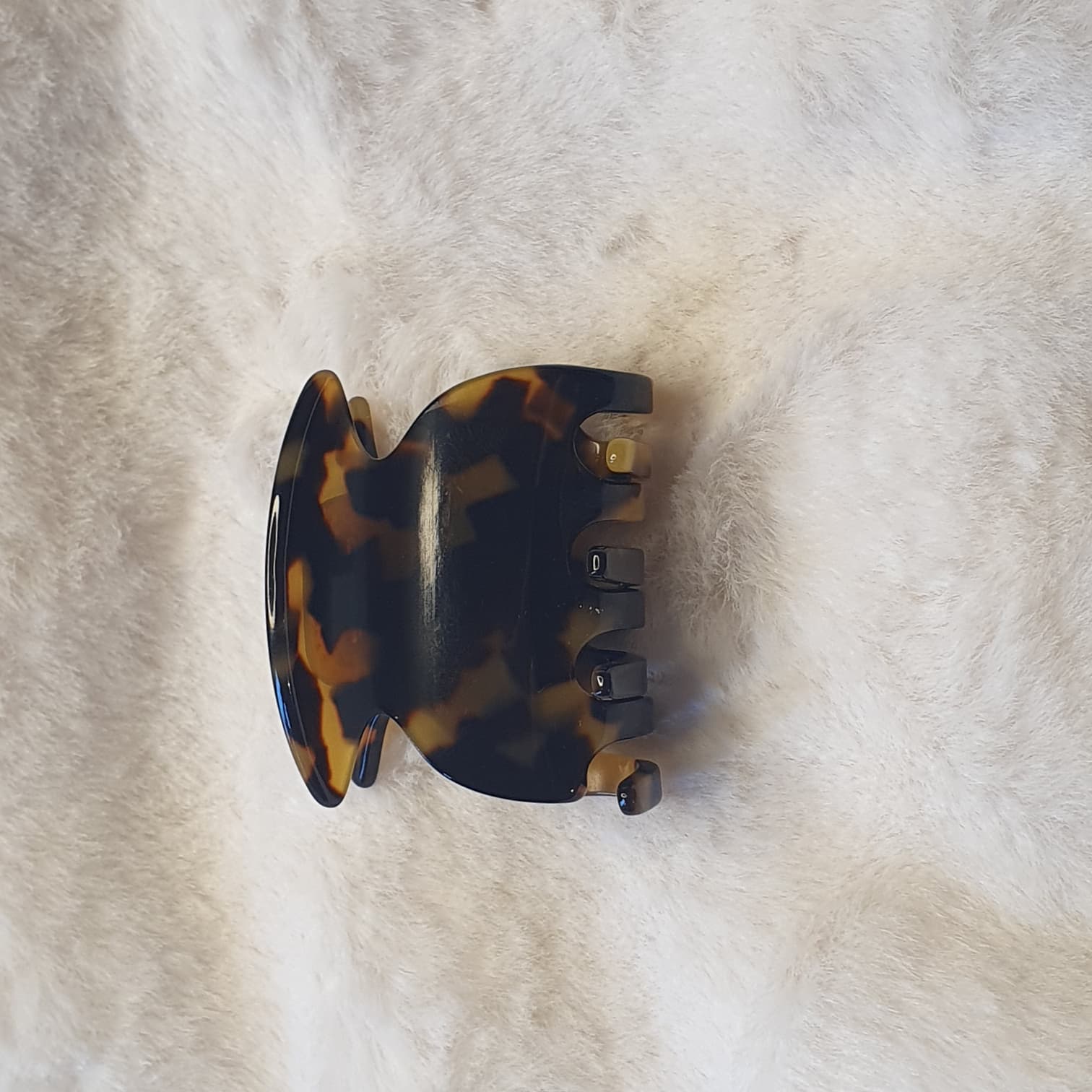 *Design et Motif : La pince arbore un motif écaille de tortue classique et intemporel, mélangeant le noir, le marron foncé et l’ambre.